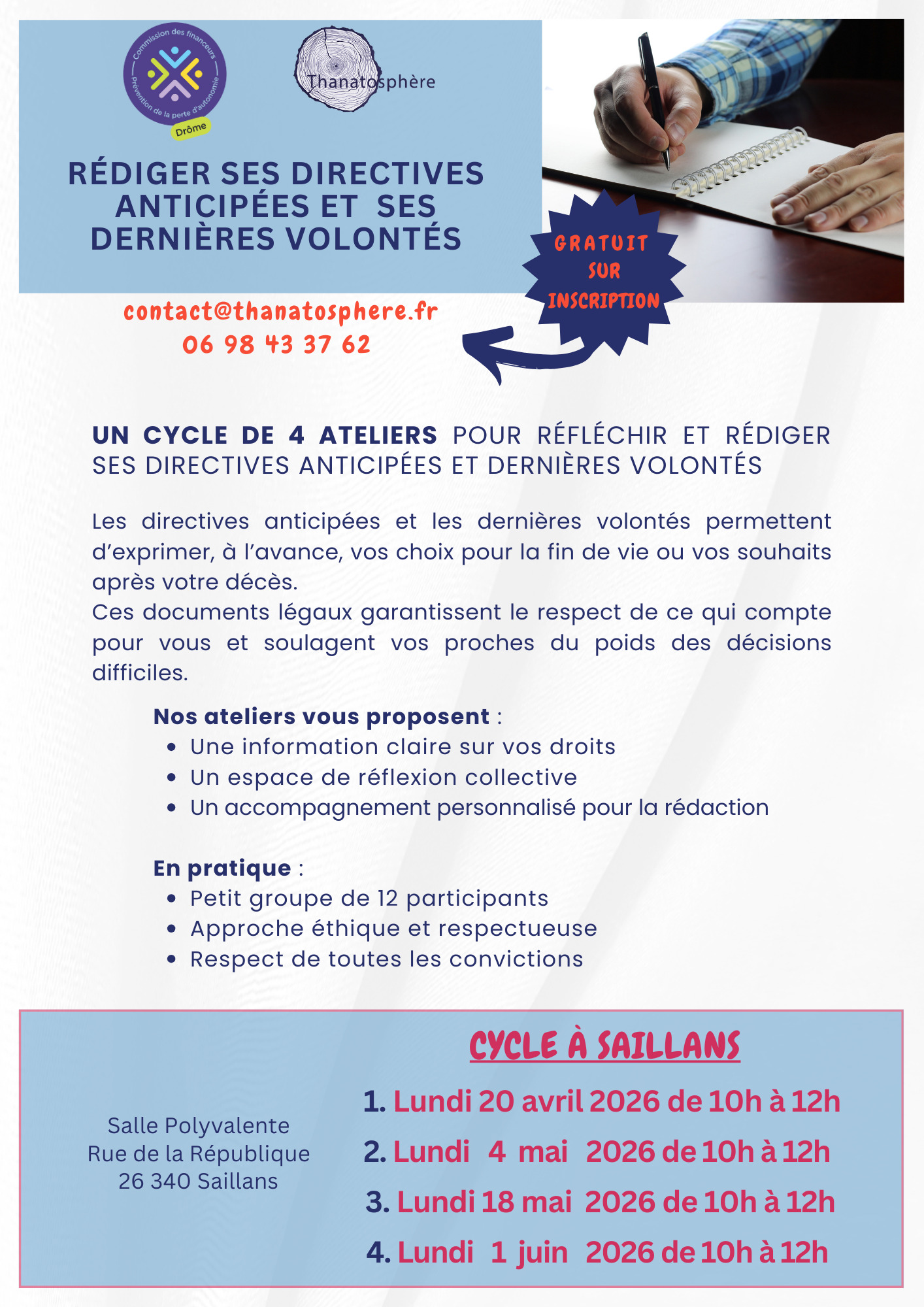 Un cycle de 4 ateliers pour réfléchir et rédiger ses directives anticipées et dernières volontés.